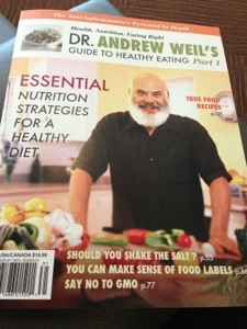 We get to the book store and head to the magazine section. I notice she is looking at outdoor magazines and canning and self sustainable living magazines. Ah ha! She was listening. I head over to the natural food and health section to see who else is chatting about inflammation. I pick up a couple and flip through them but nothing really catches me. Then I see a Dr. Andrew Weil magazine and the top says “The Anti-inflammatory Pyramid in-depth”. I looked over at my daughter and said,”Is this the new buzz word? Is this that word I’m going to see everywhere now? How weird is this?”.I pick up his magazine and flip through it and every article is about inflammation. This was exactly what I was looking for. This was no coincidence. There are hundreds of magazines to choose from and this one catches my eye. It’s wonderful too! It’s very in-depth. I include a picture copy of the magazine below so when you look for it, you’ll recognize it.